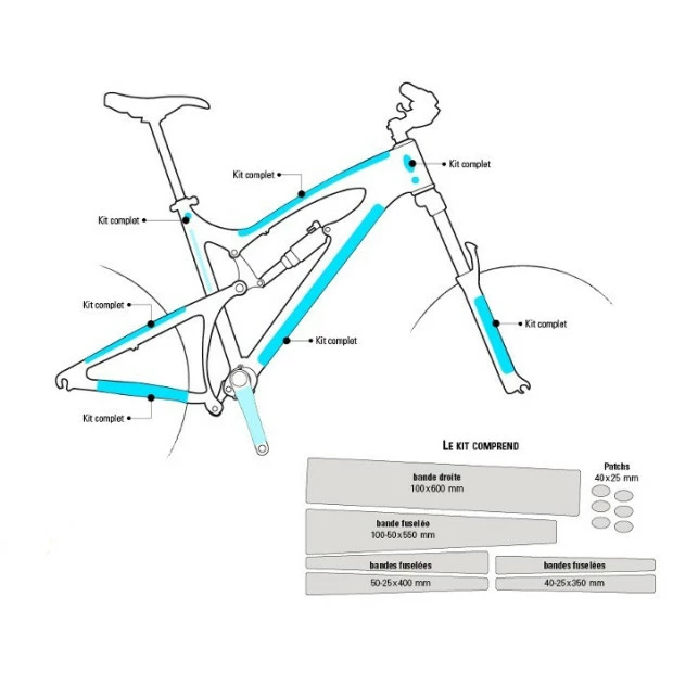 Pack de protections complet Ytwo, transparent et autocollant pour cadre. Protège des éclats de pierres et du frottement des gaines.